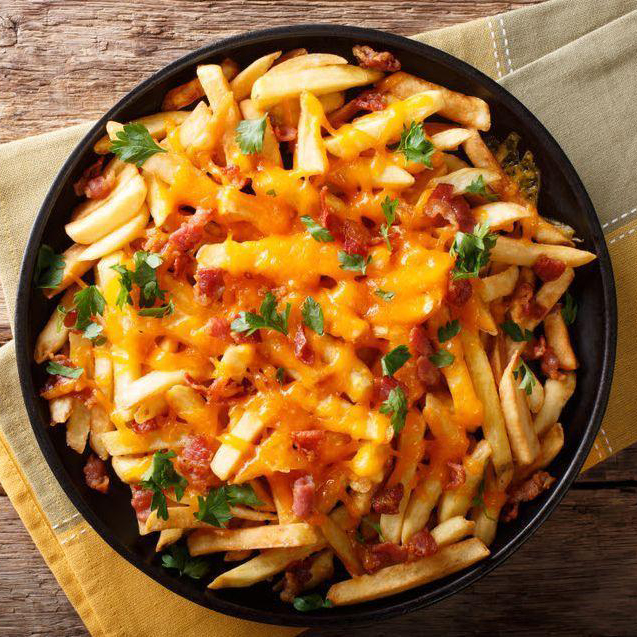 Batata Frita com bacon e Cheddar