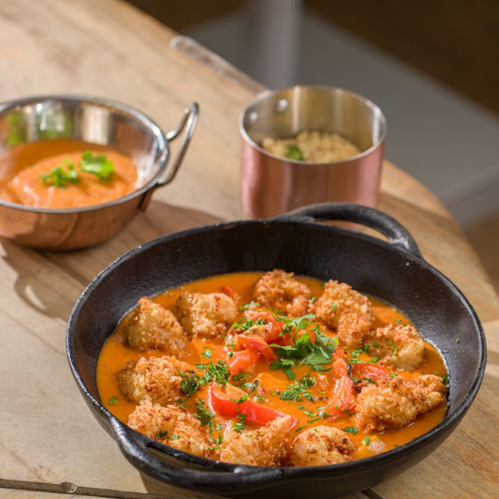 Moqueca mista com arroz coco, pirão, camarão e farofa de banana (individual)